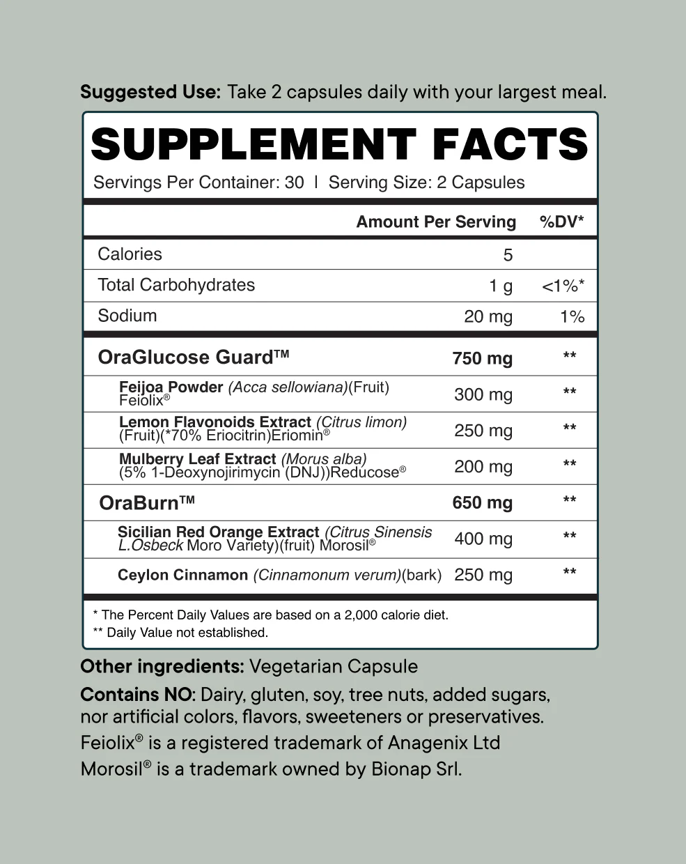 Additionally, using continuous glucose monitors, the Ora Organics Team observed that blood sugar spikes from carb-heavy meals appeared reduced and stabilised after just a few days to two weeks of taking the GLP-1 UP supplement.